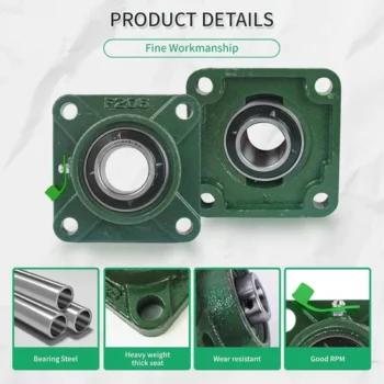 Pillow block bearing with deep groove raceway design, made from high-quality steel for durability. Suitable for high-speed and extreme temperature applications. Corrosion-resistant for long-term performance.